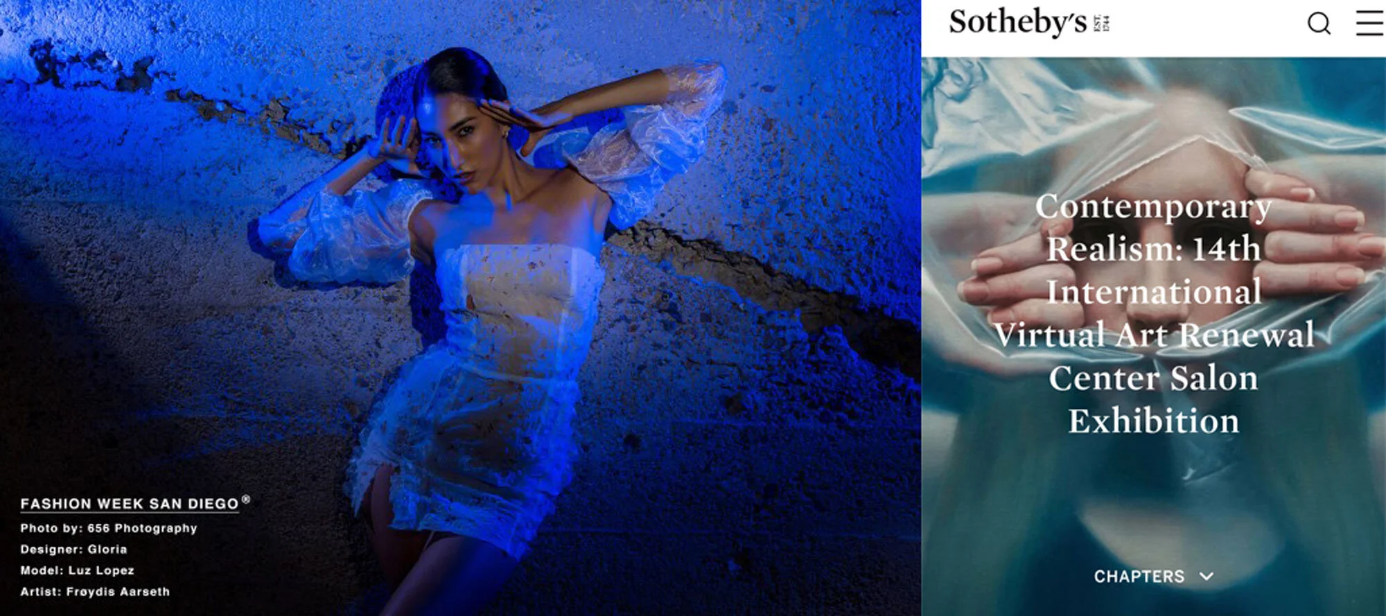 Motedesign for Fashion week San Diego California, inspirert av Frøydis sitt maleri Plastic Breakthrough | Skjermbilete frå nettsida til Sotheby